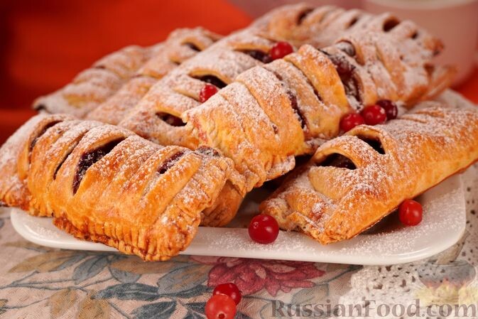 • Слойки с клюквой и бананом: идеальный вариант для завтрака или перекуса. Сочетание сладкого банана и кислых ягод станет настоящим открытием для любителей выпечки. Всего за несколько минут можно приготовить хрустящие слойки из готового теста.